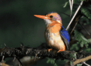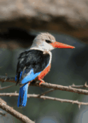Resident birds were everywhere. Some, like the ever-raucous and permanently furious Crowned Lapwings, were impossible to miss. A Pied Kingfisher used a road bridge as his favourite fishing perch, reluctant to move away even when vehicles were just inches away. Malachite Kingfisher and African Pygmy Kingfisher also posed obligingly for photographs, as did a beautiful Grey Kestrel. Back at camp, a Black-headed Heron strolled nonchalantly ahead of us on the path to our tents and two clients had a Eurasian Roller roosting each night in a tree beside their tent. .
