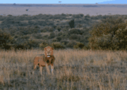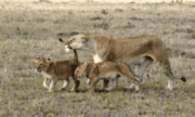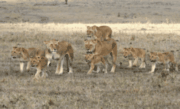 The Acacia Pride was often seen on the nearby plains: four handsome pride males, several lionesses and numerous cubs from three litters that provided endless entertainment with their boisterous play. One morning, the pride females were on the move, accompanied by all their cubs, striding across the plain, watched by scores of nervous herbivores, before finally settling down in the shade.