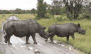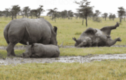 There was fascinating interaction between six white rhinos, including a mother and calf. A large, mature bull was persistently aggressive towards two young bulls while showing great interest in the mother with the calf. She, in turn, showed aggression to all the rhinos, clearly feeling very protective towards her youngster. The highlight was the big bull enjoying a mud-wallow, rolling on his back with his legs in the air.