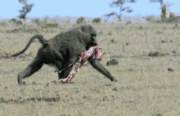 Two years ago, we saw Neema kill a young impala, only to have it stolen and eaten by male baboons. Baboons are partly carnivorous – in fact, we had already seen a male baboon running while clutching the remains of a young Thomson’s gazelle he had caught and killed.