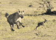 On one game-drive, we came across a spotted hyena relentlessly pursuing a young Tomson's gazelle. With its dogged, rocking-horse motion, the hyena could run for miles without tiring so the fate of the unfortunate gazelle was never in doubt.