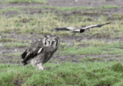 Goliath Herons are uncommon in this part of Kenya but one was regularly seen near the river in front of camp along with four species of kingfisher. Other birds around camp included Blue Flycatcher, White-browed Robin-Chat, Bronze Mannakin, Yellow Bishop and a pair of Long-Crested Eagles. Out on the nearby plains, we saw a party of migrating White Storks, two Black Storks and a Woolly-necked Stork. Rosy-breasted Longclaws and a White-headed Barbet provided some photo opportunities and a Ruppell’s Long-tailed Starling, bizarrely, was dive-bombed by an aggressive - though much smaller - Striped Kingfisher. A pair of Brown Snake Eagles displayed dramatically on the top of a tree and a Verreaux’s Eagle-owl, resting on the ground at a salt lick, was also dive-bombed, this time by a Spur-winged Lapwing.